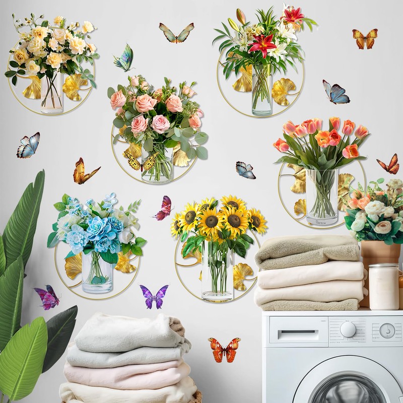 - 🦋【Unique Design】:Make the room bright and elegant with these flower vases and butterfly patterns.You can give full play to your creativity and inspiration to use these diy stickers and enjoy it with your kids or friends.The sticker is full of fun can decorate your home.