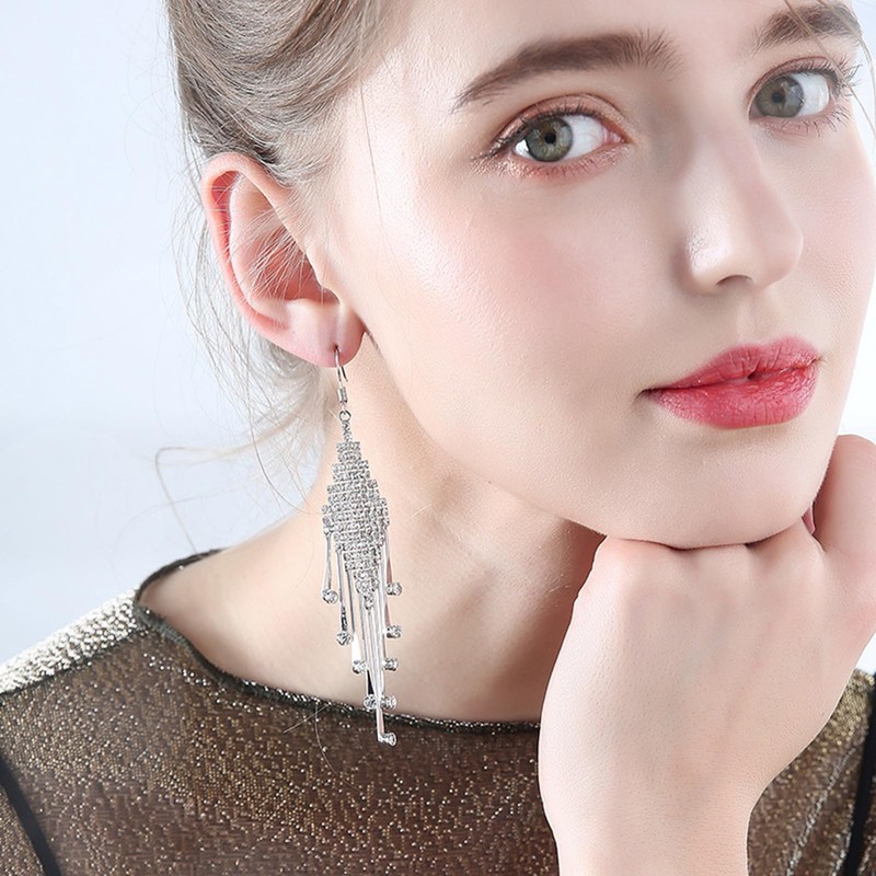 BUKEQILA Women's Silver Colour Rhinestone Crystal Earrings Lightweight Long Tassel Earrings Drop Dangle Earrings Earrings Gift for Women Girls Weddings Birthday Anniversary, Alloy Steel Silver