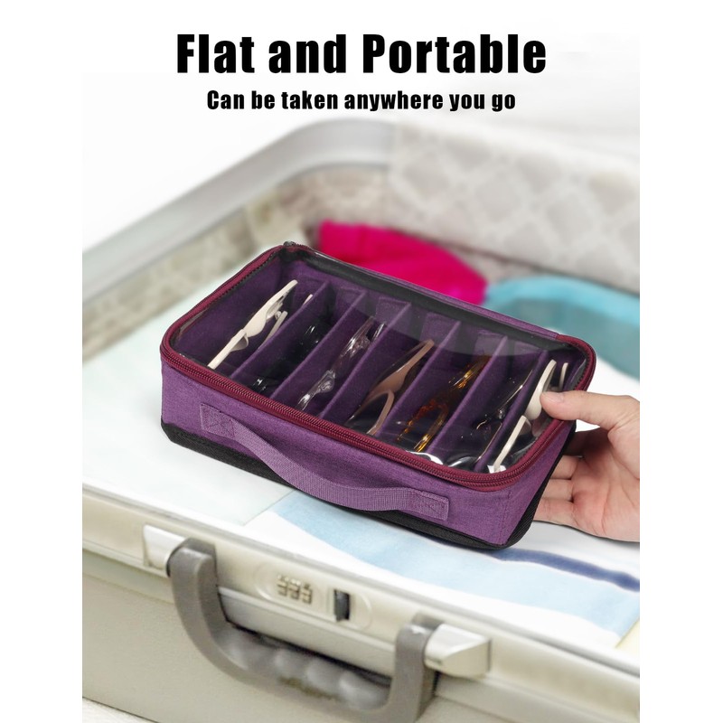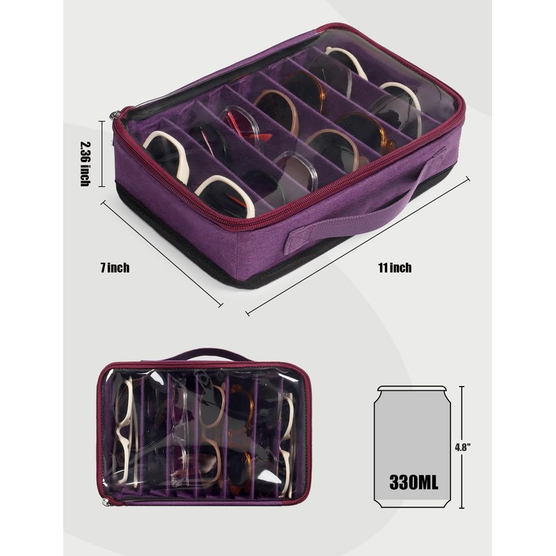 - Efficient Storage: With 7 adjustable compartments, you can modify the size and number of sections as needed, accommodating even oversized glasses. Product dimensions are 10.24 x 7.28 x 2.36 inches.