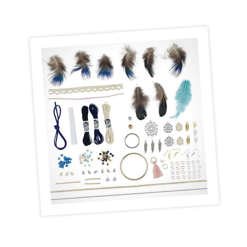 • Includes all the necessary accessories to create 1 bracelet, 2 chains and 2 pairs of earrings: feathers, connectors, pendants, chains, clasps, rings etc.