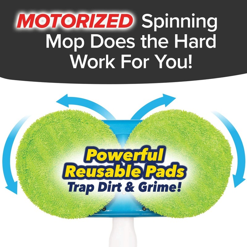 - Interchangeable Mop Head Pads: you'll receive two microfiber floor mop pads, two scrubber pads, and two polishing pads for every cleaning need in your home! Microfiber pads loosen, lift, and lock in dirt. Polishing pads spin the sparkle back to any surface instantly. Scouring pads remove the stickiest and toughest messes!