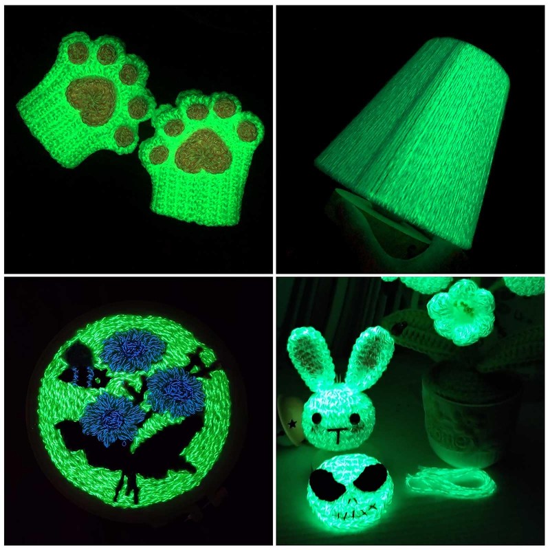 - Glow yarn: Crochet yarn You need to expose the yarn completely to the sunlight for 15~30 minutes to fully absorb the light