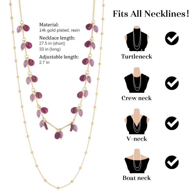 - Excellent Quality: This exquisite long pendant necklace is crafted from gold-plated chains and selected resin beads, shining in appearance. It's lead and nickel-free with low allergenicity, ensuring long-lasting wear without fading and providing comfort.