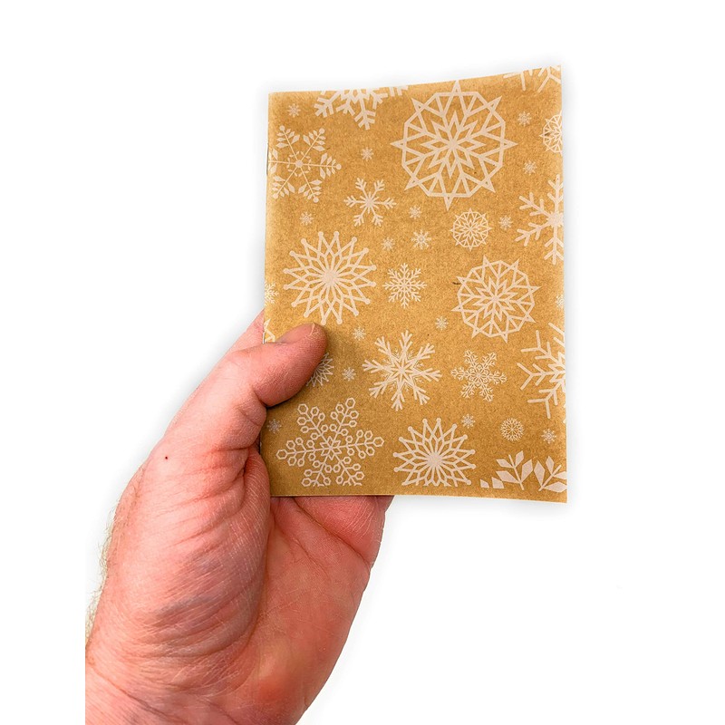 - Each 6" x 4" (size may vary by up to 1/4") notepad features snowflakes in white scattered on both front and back covers and is ready for your own decoration - Add stamping, corporate logos, stickers or even jewels to make these personal