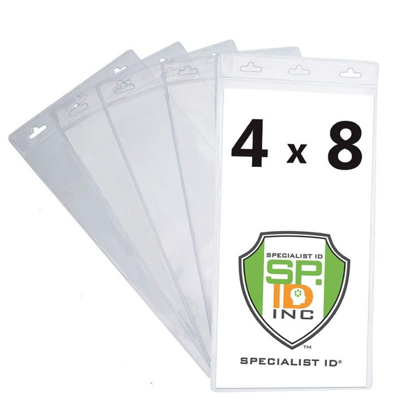 Bulk 50 Pack - Extra Large 4" X 8" Clear Plastic Ticket Holders (Really Big) 4X8 Inch Big Credential ID Protector Sleeves for Sporting Events and Concerts - 3 Top Lanyard Slots to Work w Any Lanyard