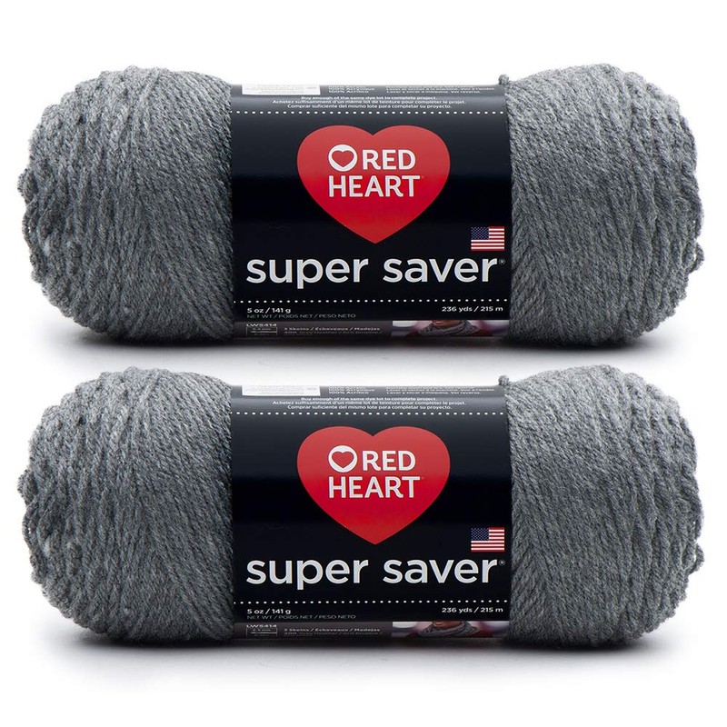 Red Heart Super Saver Yarn color Grey Heather, One skein that has 5 5oz/141g of yarn. (4) Medium Gauge. 100% acrylic. Machine wash and dry.Set of 2