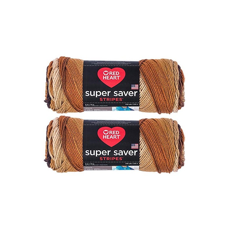 Bulk Buy: Red Heart Super Saver (2-Pack) (Latte Stripes, 5 oz Each Skein)