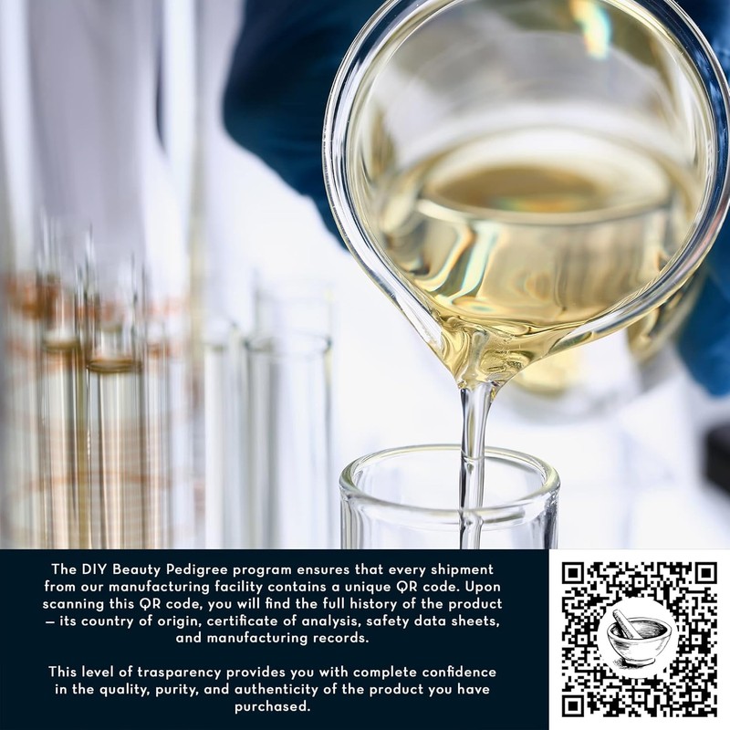This product is phthalate free, vegan, GMO free, Gluten free, and Cruelty free. It is sourced from France and bottled in our facility in Ohio. Every bottle contains a DIYBeauty Pedigree QR code. A scan of the QR code will pull up all available documentation including the certificate of analysis (COA), the GCMS test results, and the safety data sheet (SDS).