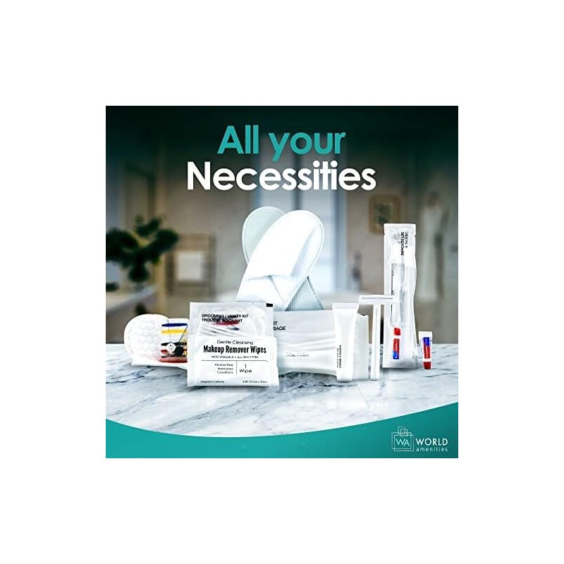 Introducing World Amenities Makeup Remover Wipes, the perfect addition to enhance your guests' stay. Whether it's hotels, Airbnb rentals, VRBO accommodations, day spas, guest rooms, motels, wedding receptions, or makeup artists' studios, these wipes provide the small added detail that increases guest satisfaction. Our gentle cleansing Makeup Remover Wipes are specifically formulated to dissolve all traces of makeup while being kind to the skin. Alcohol-free and non-abrasive, they effectively lift makeup, dirt, and impurities, leaving the skin feeling fresh and clean. Your guests can enjoy a gentle and thorough cleansing experience, suitable for all skin types. At World Amenities, we are committed to ethical practices. Our ingredients are ethically sourced, and our products have never been tested on animals. You can provide your guests with a guilt-free and cruelty-free experience, knowing that our Makeup Remover Wipes meet high ethical standards. Indulge your guests with oversized and luxurious wipes. Each wipe is super-saturated with protective vitamin E, providing a nourishing and refreshing cleanse. The sleek packaging ensures that the wipes remain fresh and ready for use, anytime and anywhere. Whether it's a quick touch-up during the day or a thorough cleanse before bed, these wipes are a convenient solution for guests on the go. Designed with hygiene and travel in mind, our Makeup Remover Wipes are individually wrapped for optimal hygiene. Each wipe is securely packaged, guaranteeing freshness and cleanliness for every use. They are also conveniently sized for travel, meeting flight safety requirements while still being large enough to effectively remove an entire face of makeup. Ideal for various hospitality industries, including Airbnb, VRBO, and hotels, these wipes provide a hassle-free and hygienic solution for guests. Elevate your guests' experience with World Amenities' Bulk Makeup Remover Wipes. Enhance their stay with convenience and luxury!