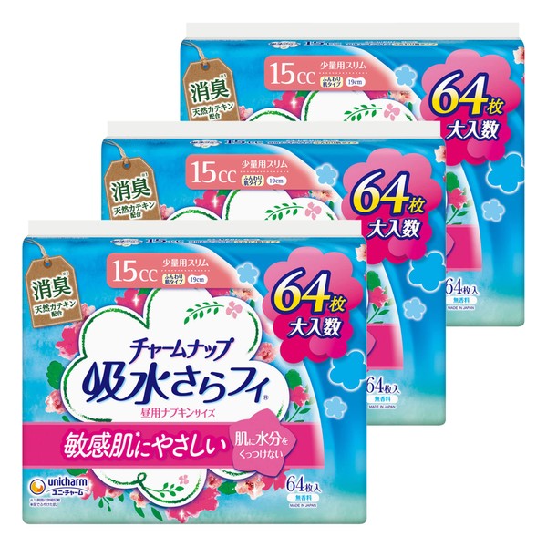 [Bulk Purchase] Charm Nap Fluffy Skin For Women, 5.5 fl oz (15 cc), Small Amounts, Unscented Daytime Napkin Size, 7.5 inches (19 cm), For Those With Light Urine Leakes, 192 Sheets (64 Sheets x 3 Pack)