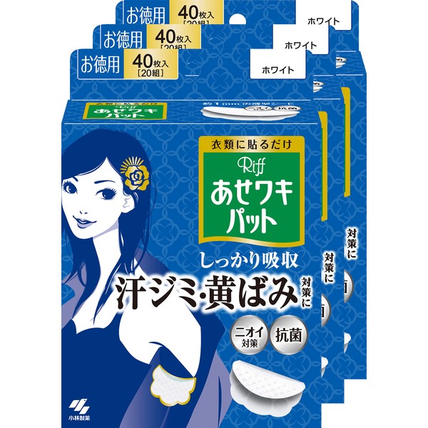 [Bulk Purchase] Riffs, Fade Resistant Underarm Pads, Fade Stain Prevention, Odor-Resistant Sheet, For Underarm Sweat, White, Value Pack, 40 Sheets (20 Pairs) x 3 Pieces (Bonus Included)