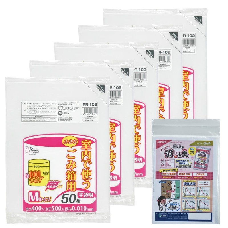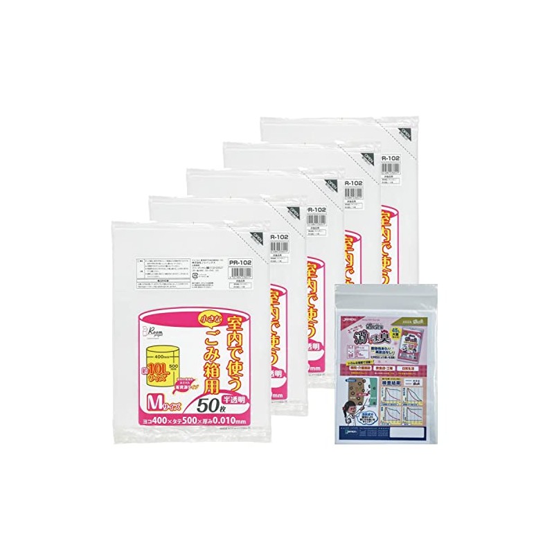 [Bulk Purchase] Trash Bags for Indoor Trash Cans, Size M (Approx. 2.8 gal (10 L), Translucent, 50 Sheets x 5 Packs + Bonus (Deodorizing Bag Measure, Eraser Odor Resistant, 10.9 gal (45 L)