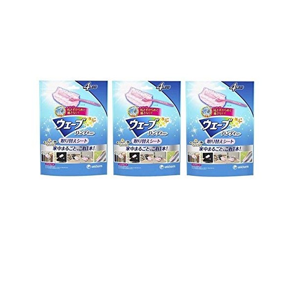 [Bulk Purchase] Wave Handy Wiper Replacement Sheet, Clear Pink, 4 Sheets x 3 Packs (Total of 12 Sheets)