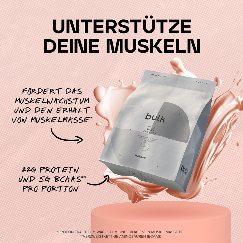 Bulk Pure Whey Protein Powder, Strawberry, 500 g