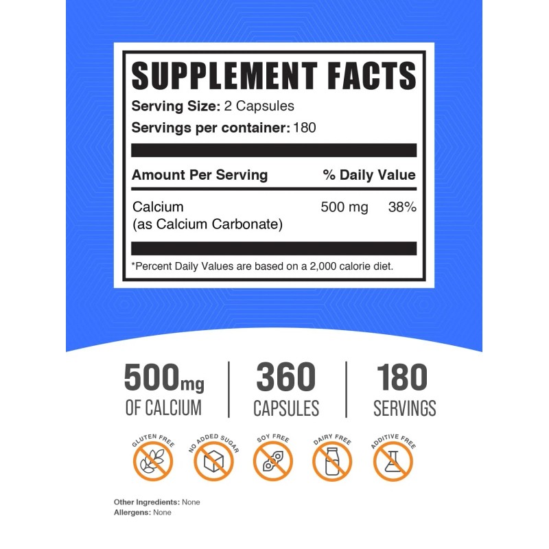 - Easy-to-Integrate Nutritional Support: Our Calcium Carbonate capsules, with Calcium 500mg per serving, are designed with your convenience in mind, offering easy-to-swallow capsules that can seamlessly become part of your existing health regimen. Enhance your nutritional intake by taking the recommended dose alongside your first meal of the day.