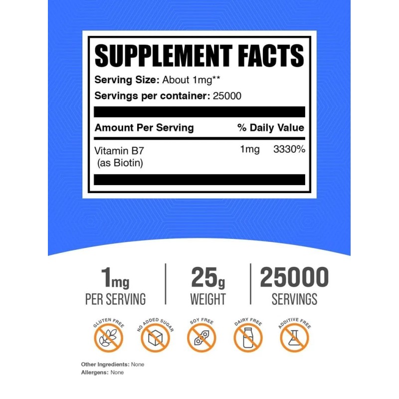 - Foundational Elements for Wellness: Pure Biotin powder, a Vitamin B7 supplement, is the cornerstones of health, playing critical roles in your overall health and wellness. Ensure your body has the right building blocks for vitality.