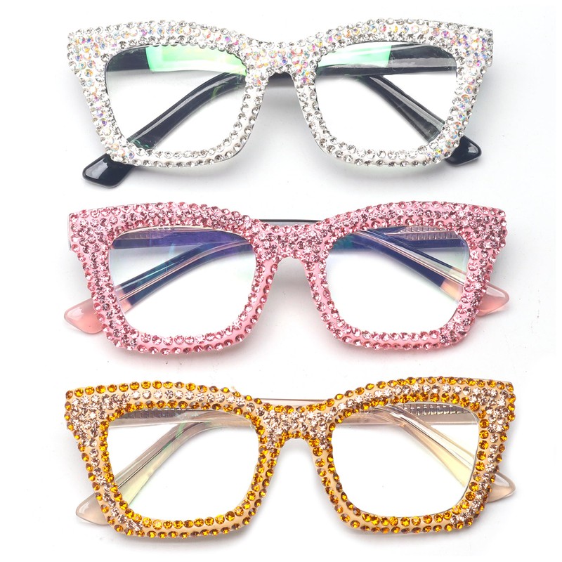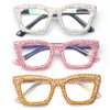 bullabulling 3 pack Oprah style Spring hinge Readers Blue Light Blocking Computer Square Reading Glasses for Women Men (Adiamond, 2.0)