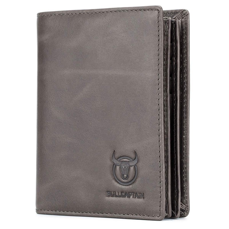 BULLCAPTAIN Large Capacity Genuine Leather Bifold Wallet/Credit Card Holder for Men with 15 Card Slots QB-027 (Grey)