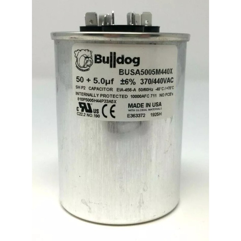 Bulldog Components HVAC Capacitor 50 + 5uf - 50/5 mfd Dual Round Run Capacitor - Made in USA