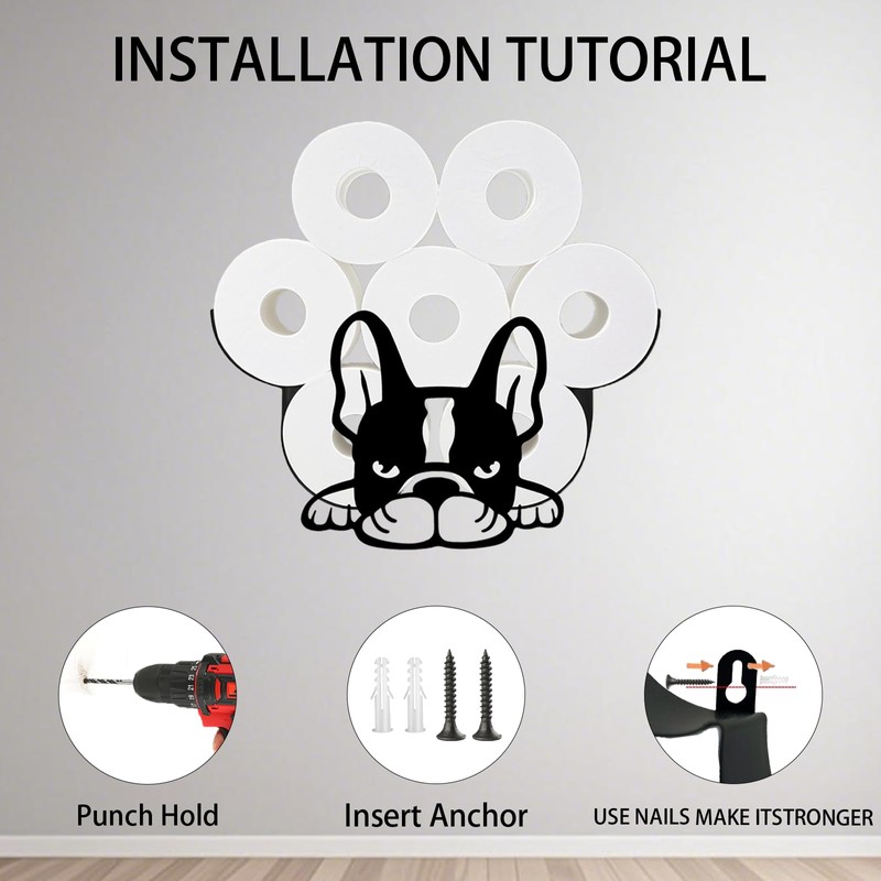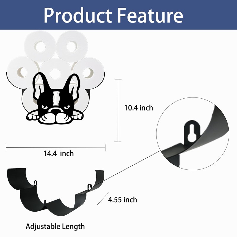 Bulldog Toilet Tissue Holder,Animal Paper Holders,Decorative Metal Papers Holder,Funny Toilet Animal Storage for Bathrooms,Bathroom Paper Organizer for Extra 8 Rolls Wall Mounted Art Decor