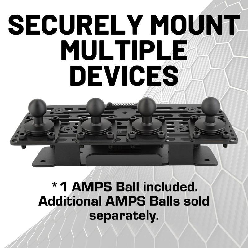 RubiGrid is a fully modular dash mounting platform made from laser-cut metal that uses AMPS mounting balls. This means that you can mount multiple devices and easily change the configuration and location of your mounting balls to dial in your perfect command center.