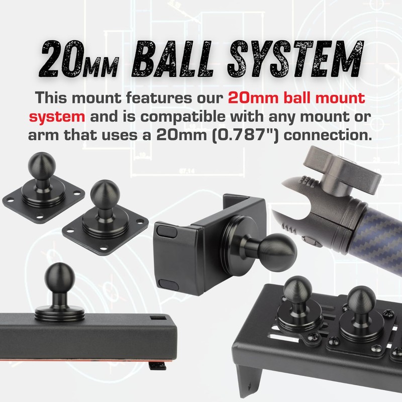 - 1x 4-Hole AMPS Style 20mm Mounting Ball with Hardware