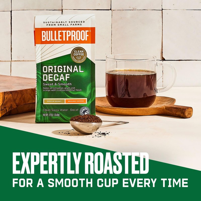 Bulletproof Bulletproof Original Medium Roast Ground Decaf Coffee, 12 Ounces, 100% Arabica Coffee Sourced from Central and South America