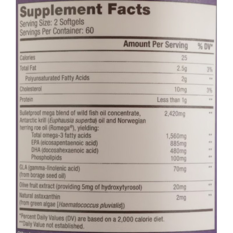 Bulletproof Omega Krill Complex Lemon 120 Softgels, 1560mg Omega-3 Best by 6/25+