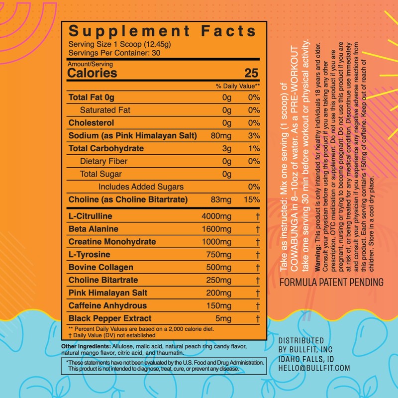 • POWER UP YOUR TRAINING WITH CLEAN PRE-WORKOUT ENERGY: Get ready to fuel your training with Cowabunga Daily Pick Me Up Pre-Workout in Peach Mango, a smooth and refreshing blend of juicy peach and tropical mango. Featuring L-Citrulline (4g), Beta Alanine (1.6g), and Creatine Monohydrate (1g), this formula is designed for those who bring intensity to every session and want clean, steady energy without the crash.