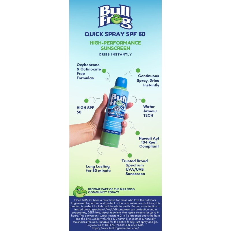Bullfrog Bullfrog Quik Spray Sunscreen SPF 50 | Oxybenzone & Octinoxate Free | Broad Spectrum Moisturizing UVA/UVB, 2 pack