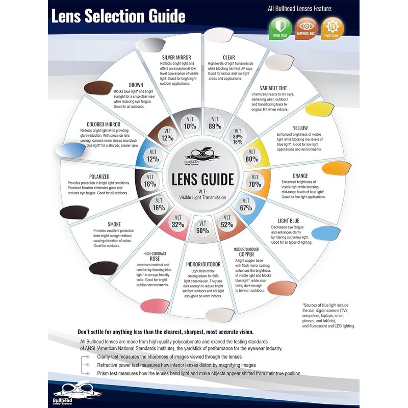 - All Day Comfort – Made with polycarbonate lenses and a lightweight, full-frame style for complete eye protection. Their nose pieces and temple ends are crafted with thermoplastic rubber to prevent slipping and maintain comfort for all-day wear.