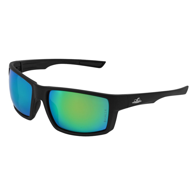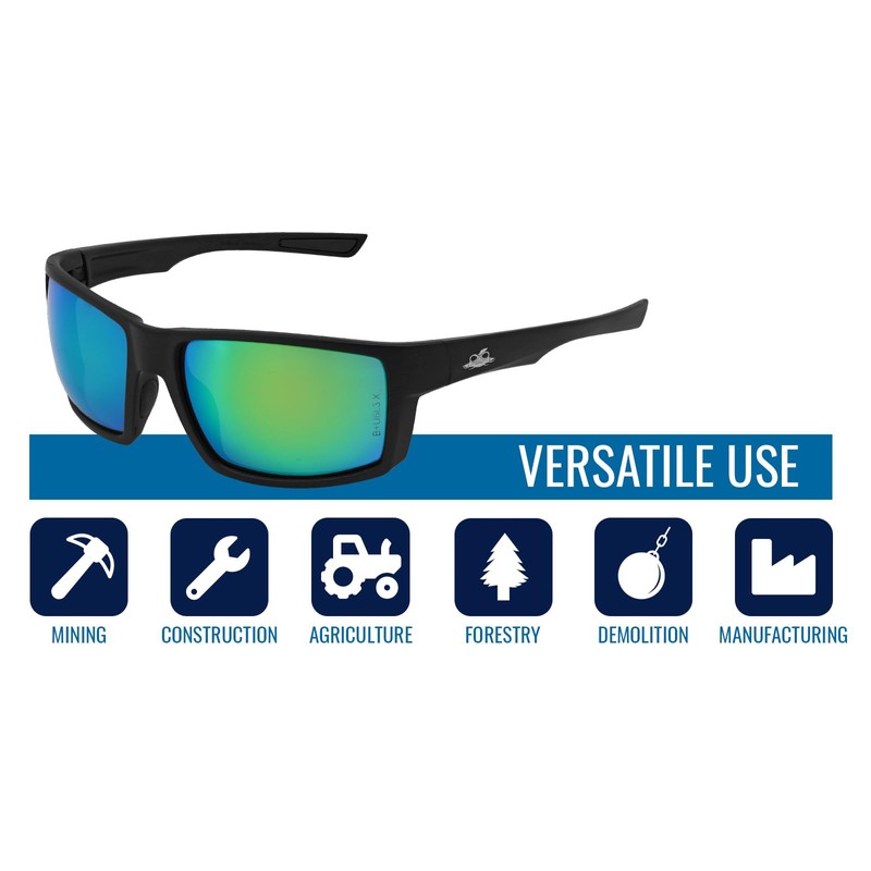 Bullhead Safety Eyewear Sawfish Safety Glasses, Precision Lens, Performance Fog Technology, Green Mirror Lens, Matte Black Frame