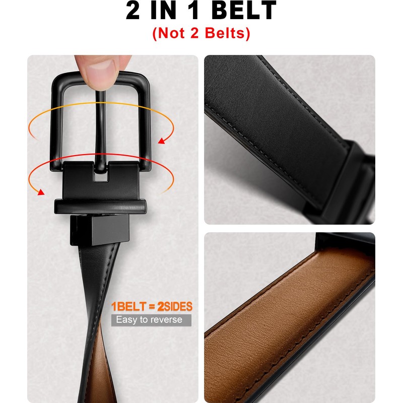 - REVERSIBLE DESIGN -- This Bulliant dress belt is constructed with rotating buckle mechanism, allowing dual strap sides available with different colors to match various outfits. You can easily switch between colors by pulling up the buckle at the hinge while rotating it, then putting it back in place;