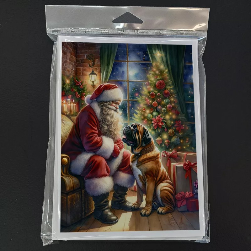 Bullmastiff and Santa Claus Greeting Cards Envelopes Pack of 8 DAC4086GCA7P