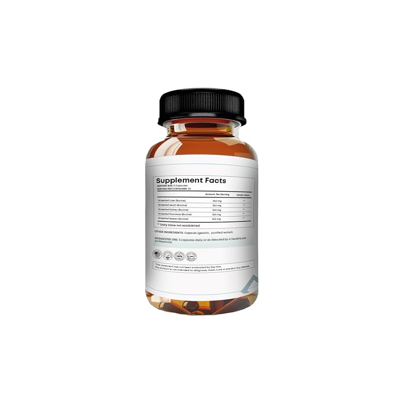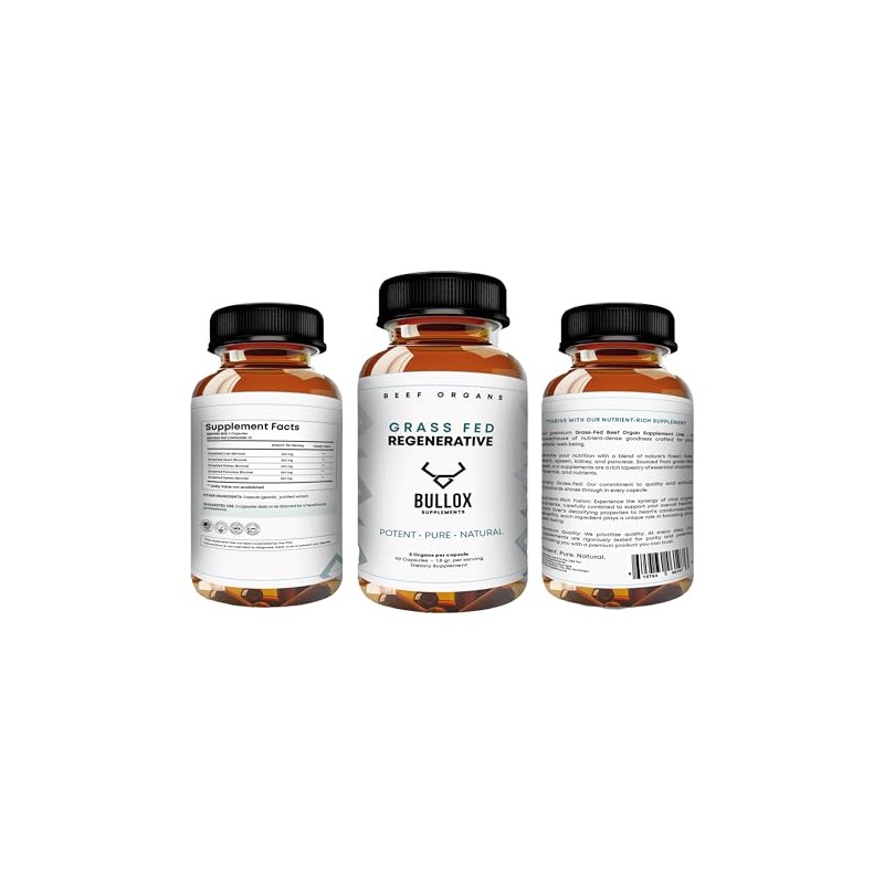 Bullox Supplements. Grass Fed Beef Organs, Freeze Dried Liver, Heart, Kidney, Pancreas and Spleen, Natural Multi-Vitamin Supporting Wellness and Whole Body Nutrition. Non GMO, Free Pesticides.