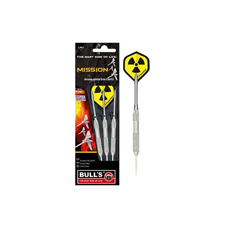 Bull's mission darts with nickel-chrome steel tips. For advanced non-competitive players. With aluminium shafts and power flights. In a handy Bull's Cone case.