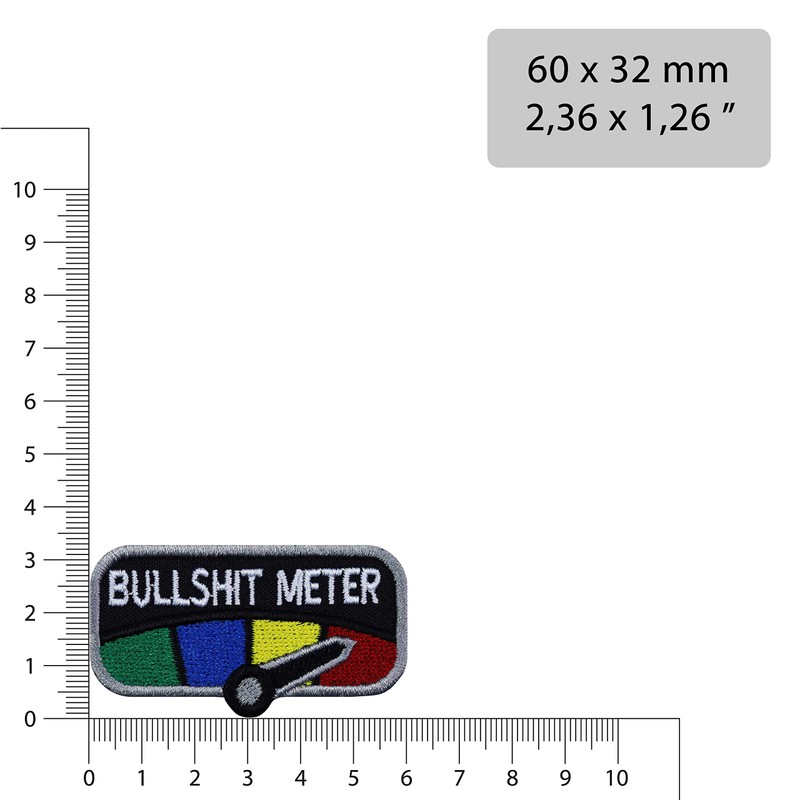- Dimensions: dimensions including embroidered edge 60 x 32 mm, design: bullshit meter