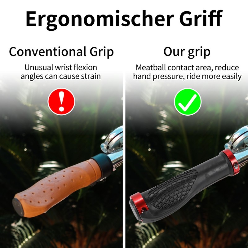- ERGONOMIC DESIGN The bike grips feature ergonomic design with wider and soft pads that allow your palms to rest comfortably. This design helps reduce hand strain and improve the overall driving experience.