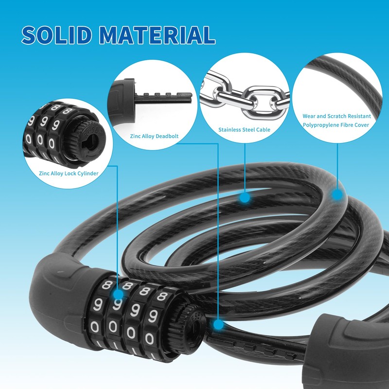 - RELIABLE SECURITY This bike lock combination lock provides a reliable solution to protect your bike from theft and provides security in public environments. Its robust construction and advanced locking system ensure maximum safety for your valuable bike.
