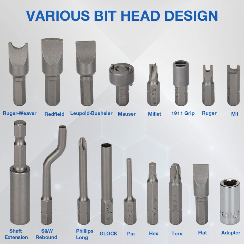- 【BIT HEAD DESIGN】: Precision screwdriver bits includes 54 Flat bits, 15 Specialty bits, 8 Hex bits, 4 Phillips bits, 3 Torx bits. Screw heads in Flat, Phillips, Hex, & Torx styles has almost everything you need for convenient and effective repair and maintenance.