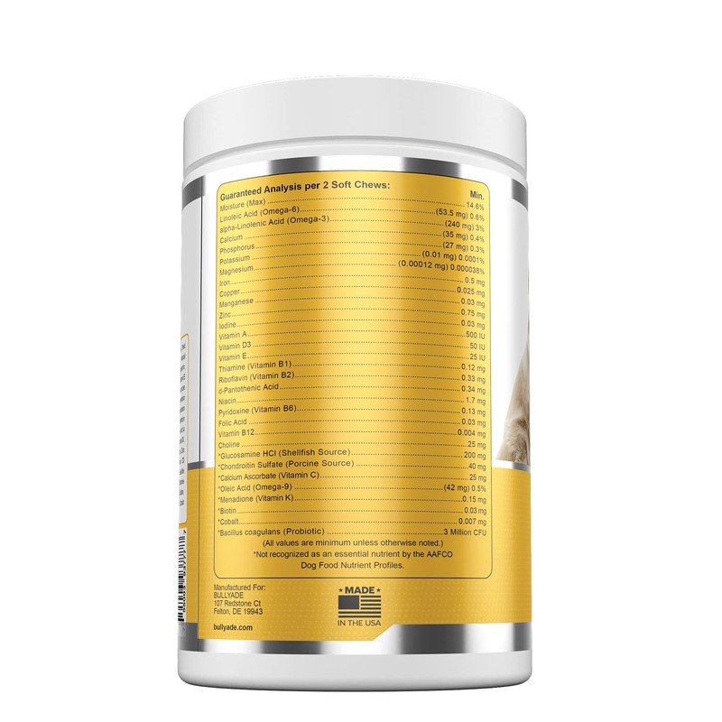 Bullyade 4 in 1 - Probiotic, Joint Support, Skin & Coat, Multi-Vitamin Soft Chews for Dogs, 16.9 oz