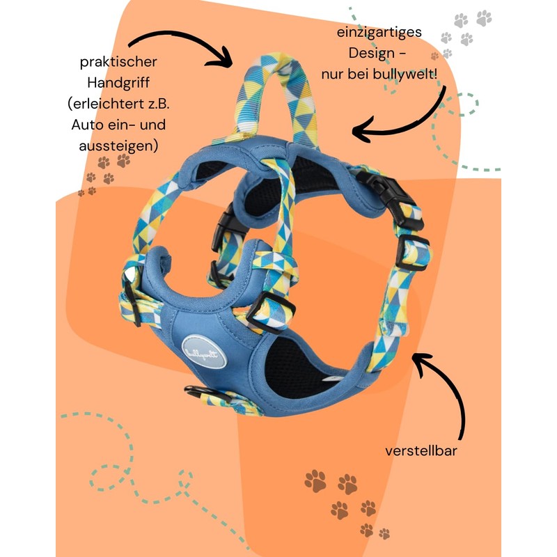 bullywelt Dog Harness Anti-Pull Harness for French Bulldog, Frenchie, French Bulldog, Pug, English Bulldog (Blue, S)