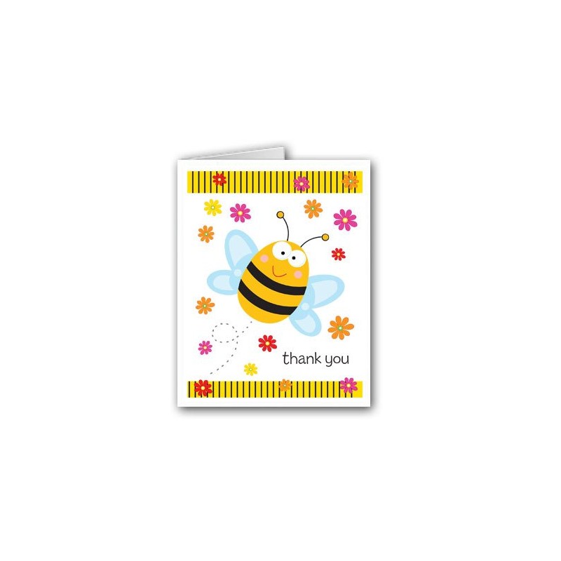 Bumble Bee Theme Blank Thank You Note Card - 10 Boxed Cards & Envelopes
