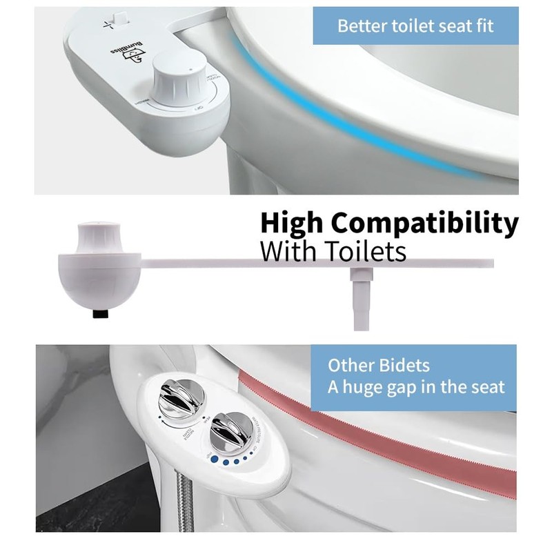 - SPACE-SAVING: Slim profile attachment maintains regular toilet seat height while adding bidet functionality