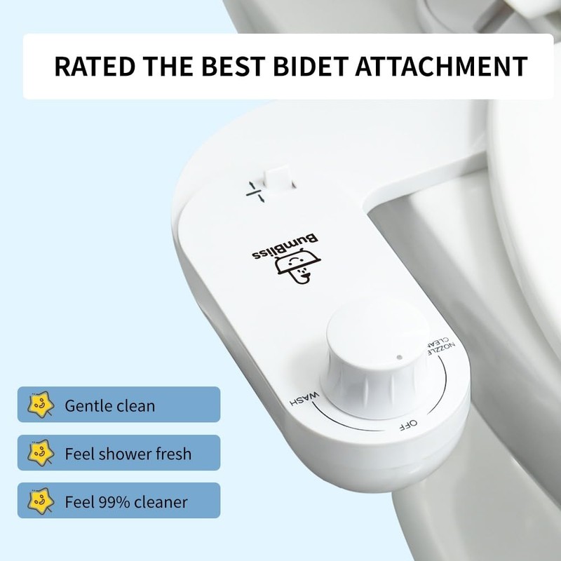 BumBliss Non-Electric Bidet Toilet Attachment, Manual Control with White Knob, White