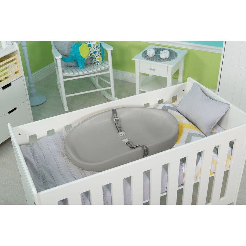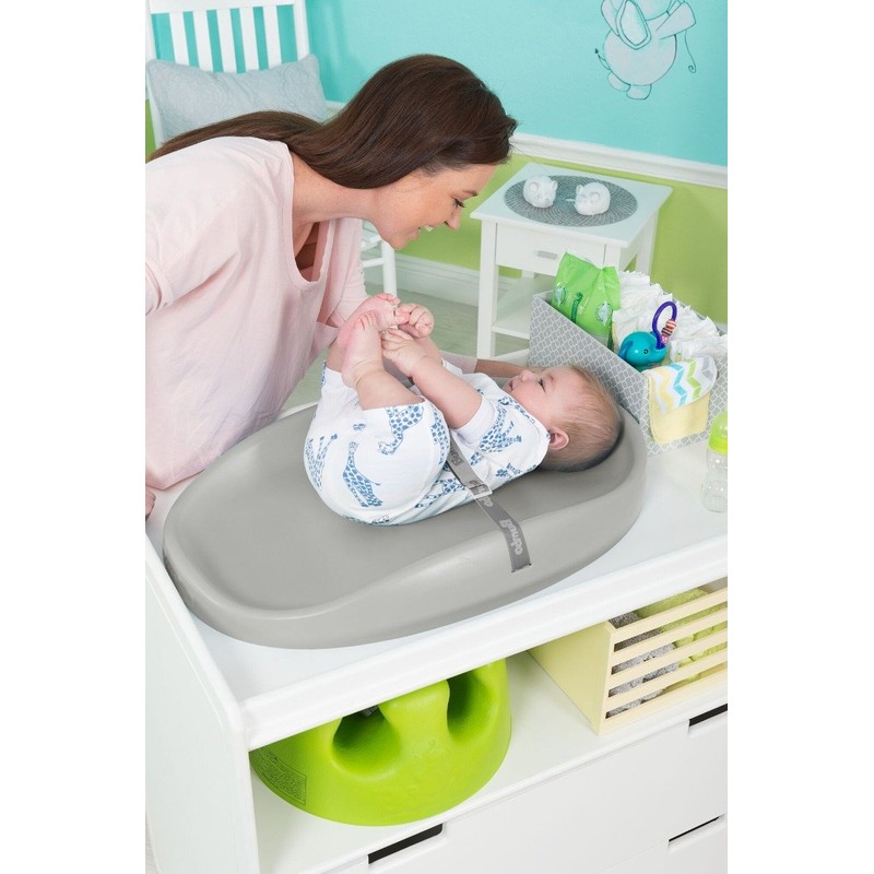 Bumbo Baby Changing Pad for Dresser or Table Top, Portable & Wipeable Non Slip Soft Contoured Diaper Change Station with Harness, Cool Grey