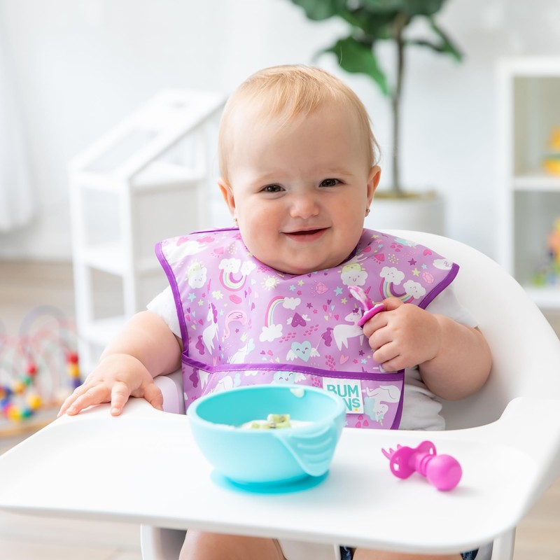 Bumkins Superbabero, babero para bebé, impermeable, lavable, resistente a manchas y olor, 6-24 meses, Unicornio y arco iris., Unicornio y arcoíris., Paquete de 3