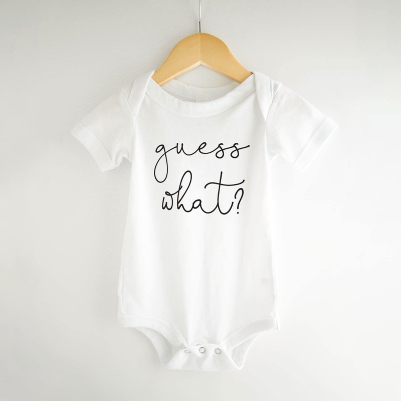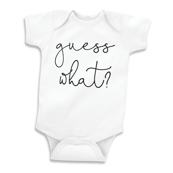 Bump and Beyond Designs Baby Surprise Pregnancy Announcement to Family Guess What (3-6 Months, White)