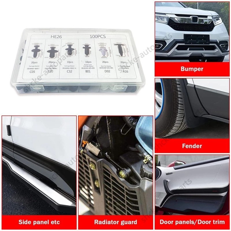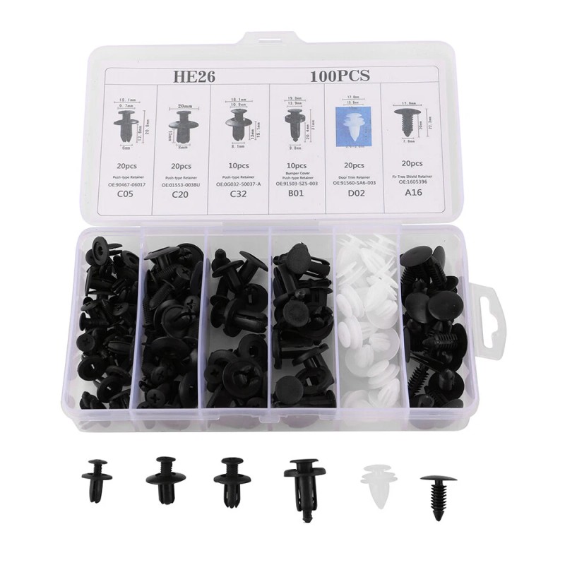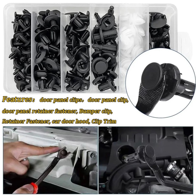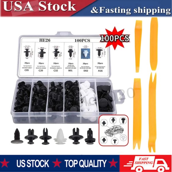 Bumper_Carparts 100PACK Bumper Clips FENDER TRIM Car Auto Push Pin Rivet FASTENER PANEL+ Tools