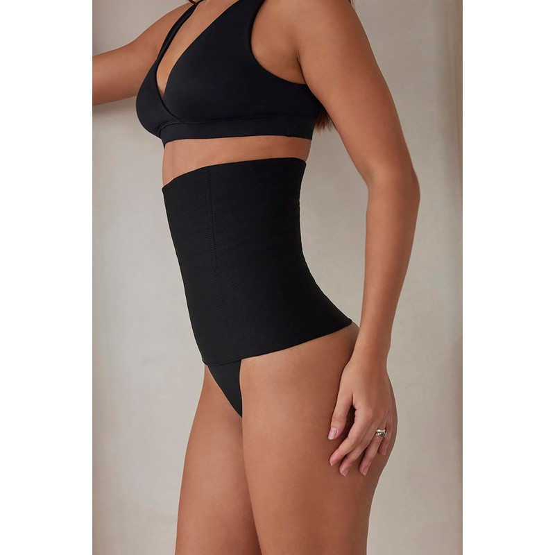 BUMPSUIT Postpartum Waist Trainer for Women Lower Belly Fat, Seamless Elastic Fabric Pull Up Style Tummy Control Shapewear Compression Garment Black